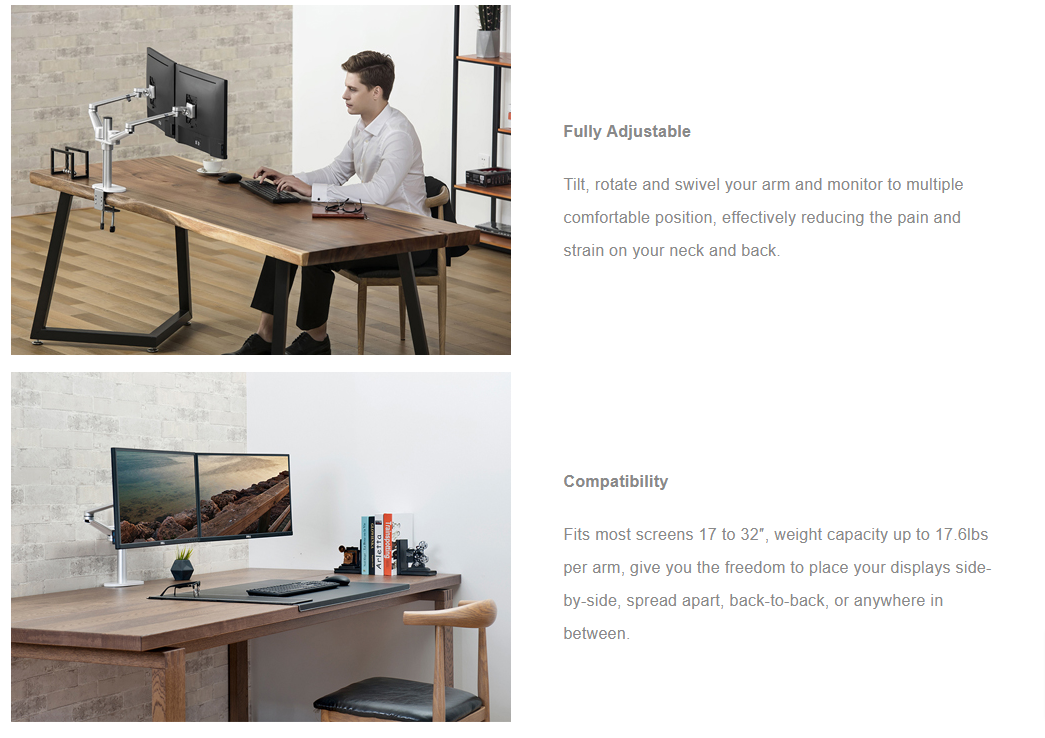 UPERGO OL-2 ذراع شاشة ألومنيوم كاملة الحركة مزدوجة الحركة، حامل للألعاب والاستخدام المكتبي، 17 - 32