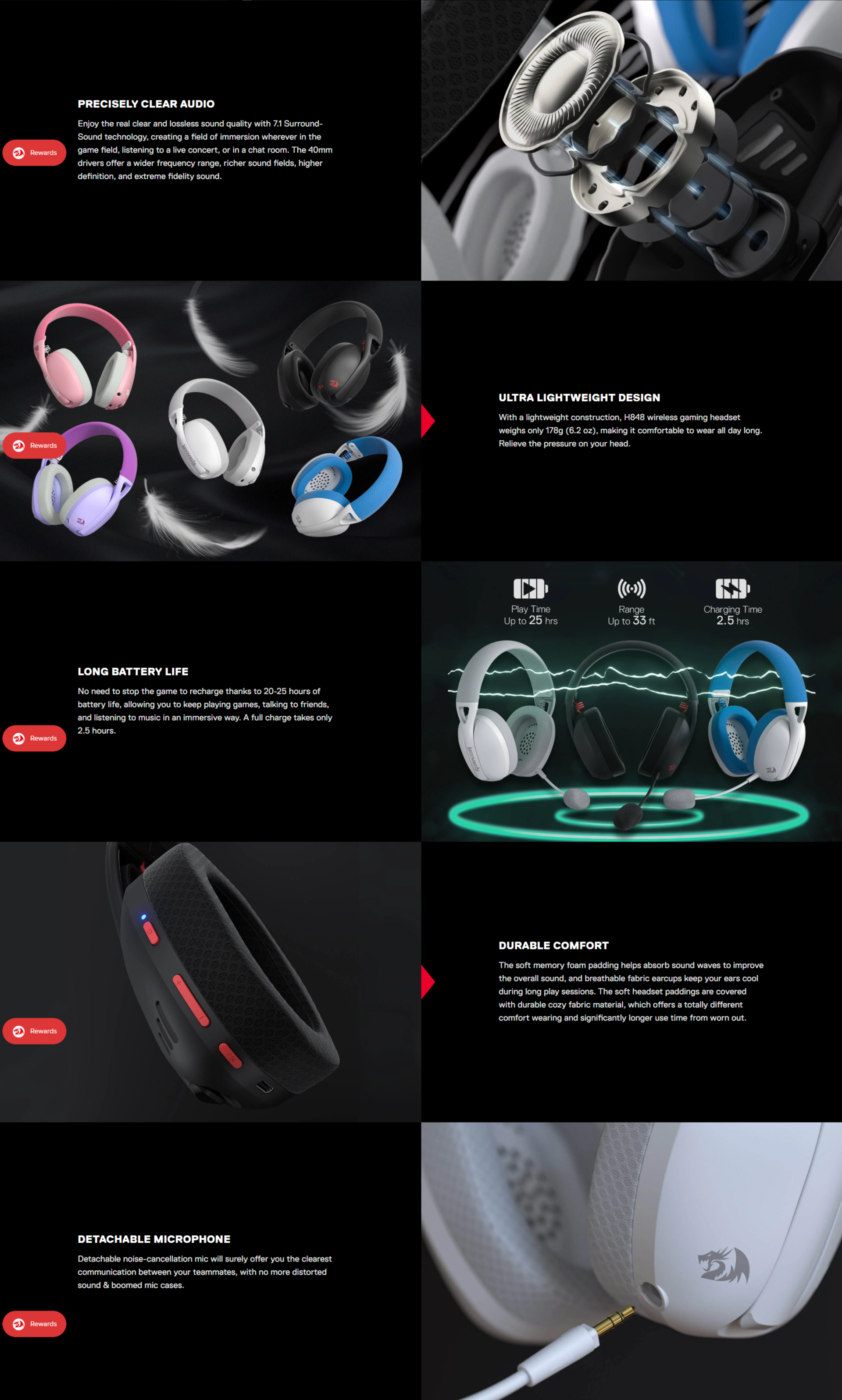 - أول سماعة Redragon بثلاثة أوضاع اتصال لاسلكي (بلوتوث، 2.4GHz، سلكي).