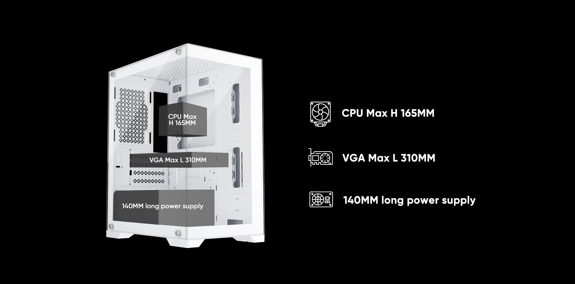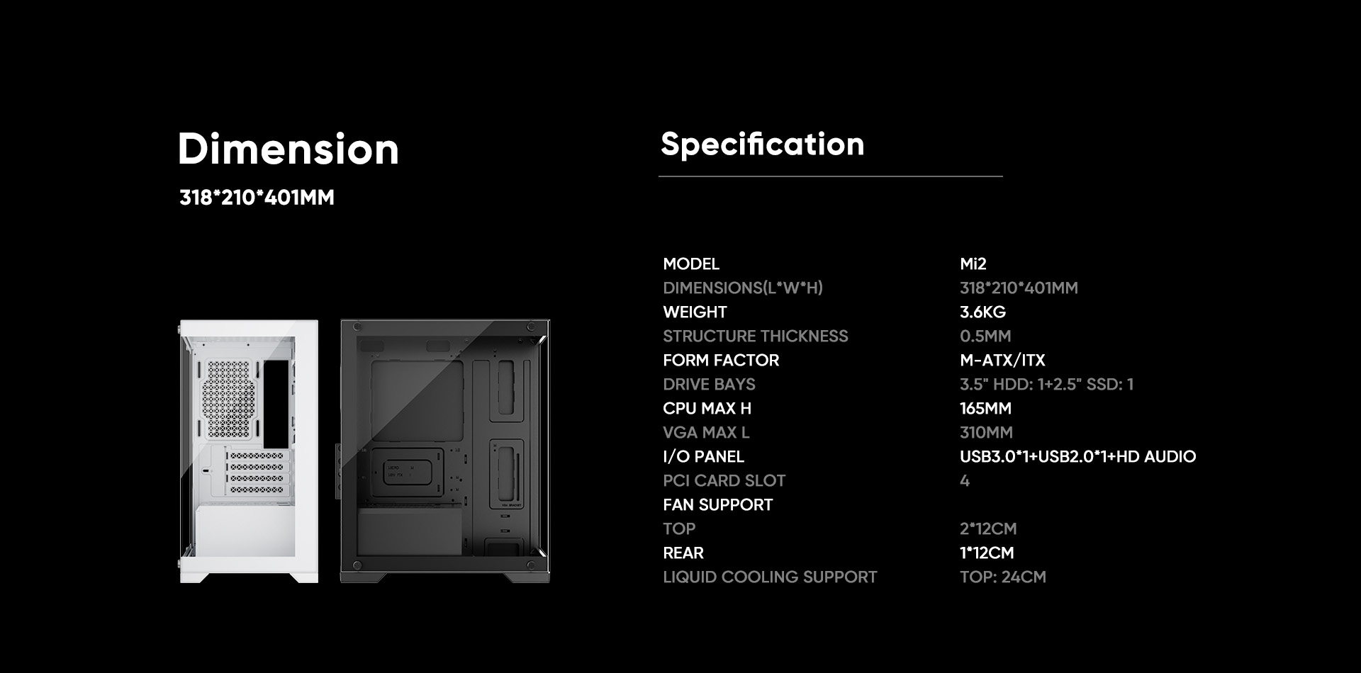 كيس الكمبيوتر 1STPLAYER Mi2 هو اختيار مثالي لمحبي كمبيوترات القيمنق، يجمع بين التصميم المدمج والأداء المميز، مع دعم أنظمة التبريد السائل والهوائي. يتميز بخامات عالية الجودة وتصميم جانبي من الزجاج المقوى لإظهار مكونات الجهاز.